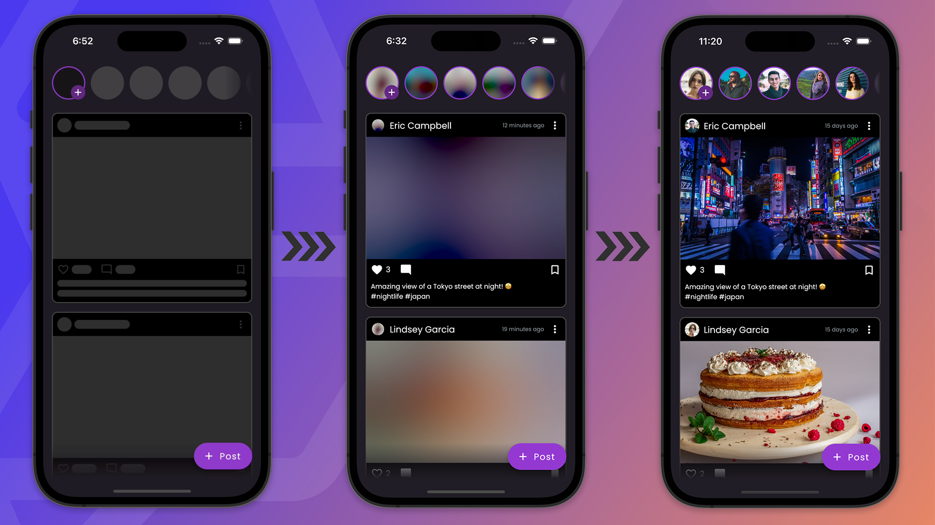 Loading skeleton along with BlurHash creates a nice progressive loading experience for the users instead of a screen filled with empty widgets and circular progress indicators.