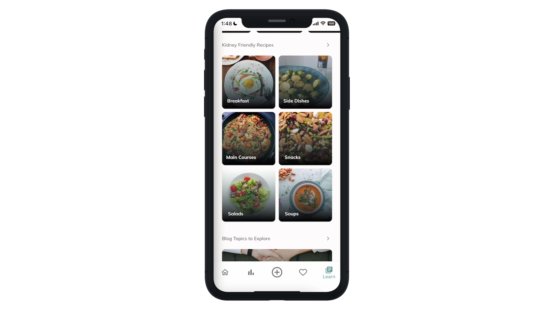 4. Learn Page: The learn page is a dedicated space where users can read blog posts covering various aspects of kidney disease and find kidney-friendly recipes.