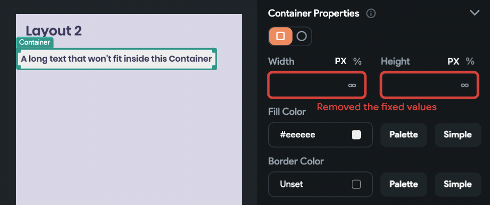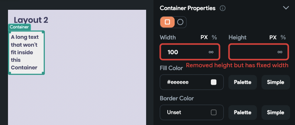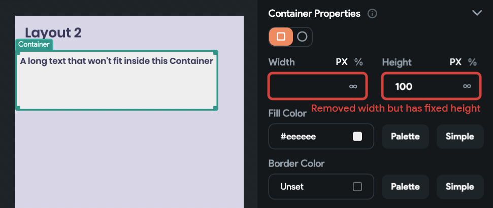 You can see in the above image the last word of the text is cropped off as it couldn't fit inside the Container.