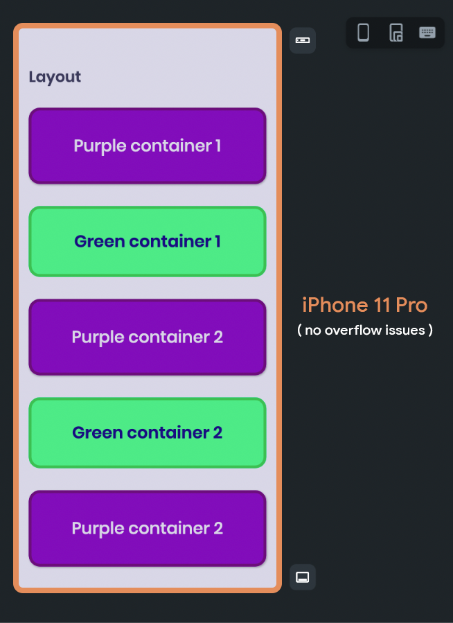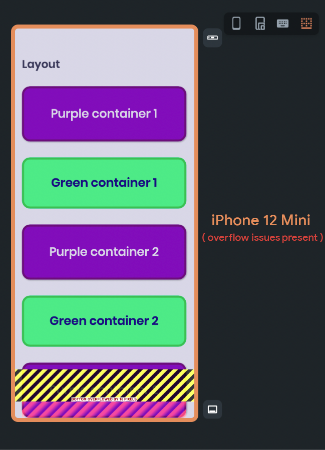 In the following layout, we have added a bunch of Containers (purple and neon green) inside a Column (non-scrollable).